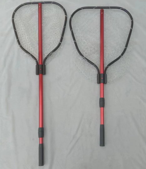 堅固大抄網,不同形狀大小的網頭可供選擇,鋁材網框和桿,硅膠網,保護魚類免受傷害,2節伸縮桿,結實耐用